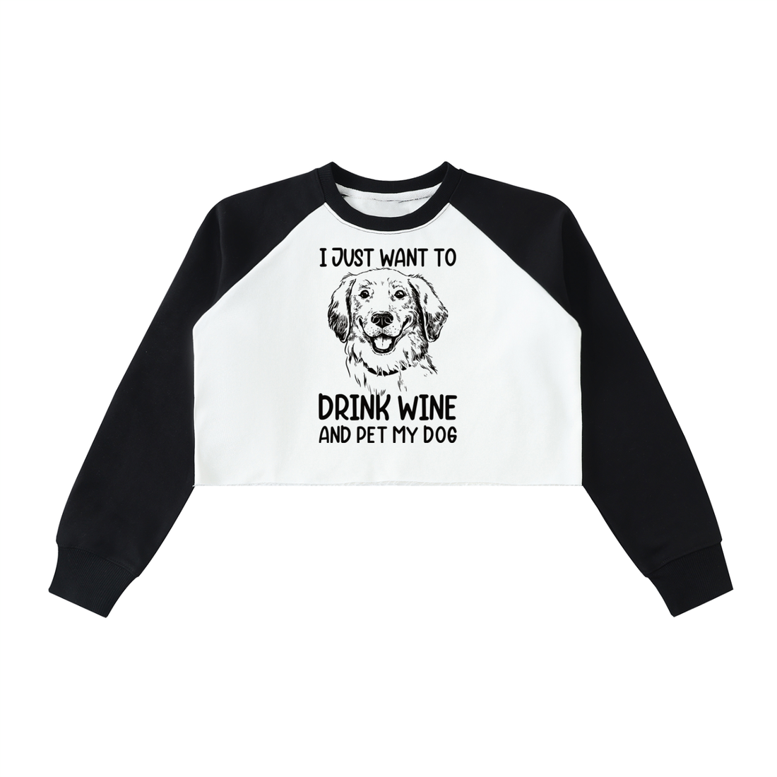 Raw-Hem Color-Block Raglan Crop Sweatshirt